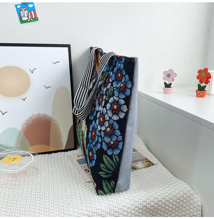 Made from sturdy canvas and lined with protective polyester, this tote is as functional as it is artistic ready to carry your essentials with elegance and ease.